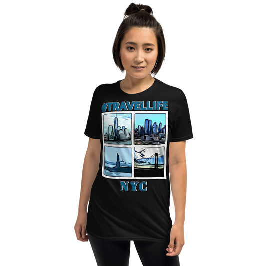 #Travellife NYC Collage Unisex T-Shirt blue text
