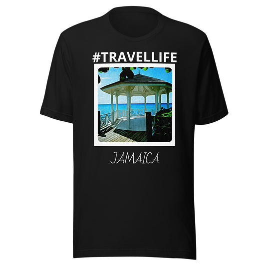 #Travellife Jamaica Beach Gazebo Unisex t-shirt white text